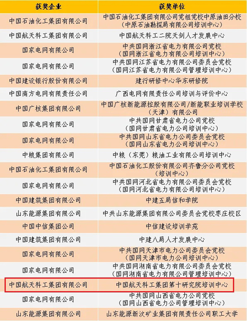 近日,中國航天科工航天江南培訓中心首次獲評中國企業高管培訓發展聯盟強優教育培訓機構,集團公司共3家單位獲評,分別為集團公司黨校、二院天劍人才發展中心和航天江南培訓中心。