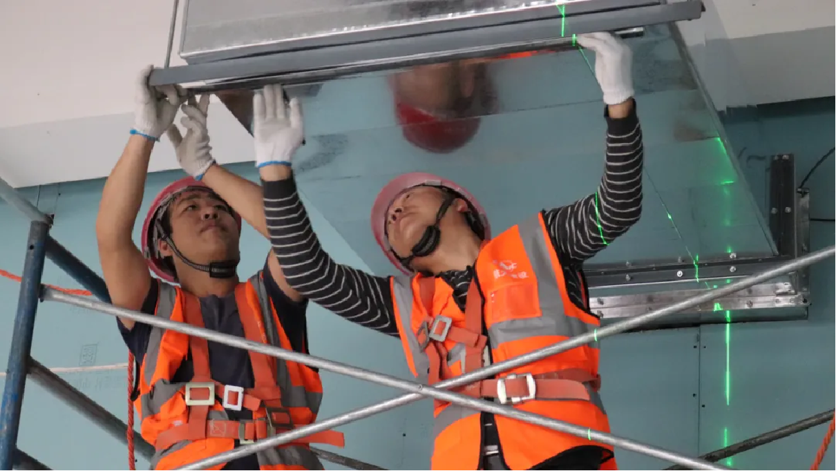 建筑安裝公司通過技術創新,全面提升機電安裝工程的質量和效率。組織技術人員定期開展“五小”活動,改進施工機具和工藝,取得良好效果。研發共用支架加工平臺與吊裝機具,提高安裝效率;研發管道吊裝平臺,減少焊口數量和人員投入;研發閥門組件預制加工平臺,提高施工質量和安裝效率;研發模塊化吊頂風口安裝新方法,解決風口安裝觀感及漏風率等問題;研發風管新施工方法,攻克三面剪力墻結構風井無法安裝金屬風管的行業難題。