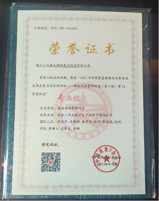 9月26-27日,由中國質量協會和《中國質量》雜志社共同開展的2024年中國質量創新與質量改進成果發表交流活動在天津市舉辦。在其精益現場管理改進成果(第二期)暨5S管理改進發布賽上,航天科工九院險峰公司發布的《精益工作在提升生產效率方面的應用》課題,憑借課題內容的專業性、嚴謹性、詳實性以及發表人的卓越表現,獲得評委的高度評價,在激烈的競爭中脫穎而出,斬獲“專業級”榮譽。