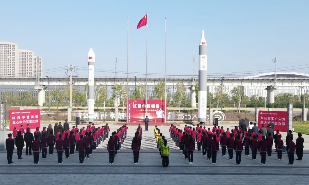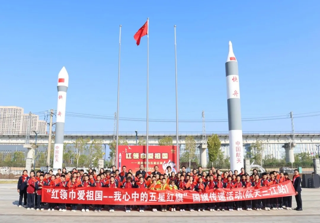10月23日,由全國少工委聯(lián)合中國載人航天工程新聞宣傳辦公室舉辦的“紅領(lǐng)巾愛祖國——我心中的五星紅旗”國旗傳遞活動(dòng),在湖北武漢國家航天產(chǎn)業(yè)基地快舟火箭產(chǎn)業(yè)園舉行。共青團(tuán)湖北省委領(lǐng)導(dǎo)、湖北省少工委、共青團(tuán)武漢市委、武漢市新洲區(qū)、航天科工九院及所屬火箭公司等相關(guān)負(fù)責(zé)同志及代表,武漢市新洲區(qū)雙柳街中心小學(xué)、武漢市十一實(shí)驗(yàn)學(xué)校少先隊(duì)員、少先隊(duì)輔導(dǎo)員代表,共計(jì)100余人參加活動(dòng)。