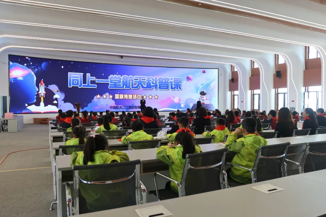 升旗儀式結(jié)束后,來自火箭公司的青年科技工作者唐詩,為少先隊(duì)員們上了一堂科普課,從載人航天和可回收火箭等最為好奇的熱門話題引入,講解了快舟火箭的誕生和發(fā)展,介紹了東方紅、北斗、嫦娥、天宮等國家重大航天項(xiàng)目,生動(dòng)點(diǎn)亮了少年們的航天夢。圍繞“紅領(lǐng)巾愛祖國”主題,少先隊(duì)們員現(xiàn)場進(jìn)行熱烈互動(dòng)和交流。