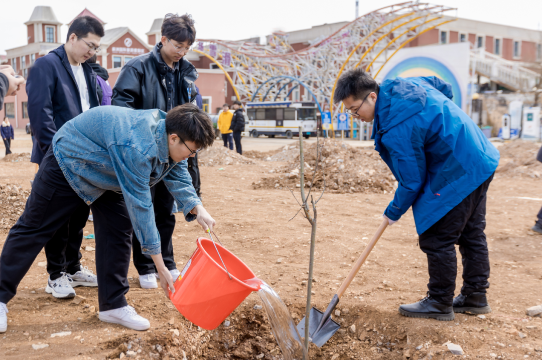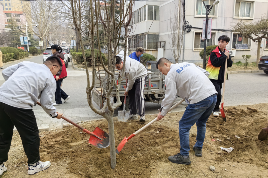 植樹(shù)現(xiàn)場(chǎng),春和景明,一片繁忙有序的勞動(dòng)景象。大家分工協(xié)作,默契配合,揮鍬鏟土、培土圍堰、提桶澆水,種下海棠、山楂、牡丹等樹(shù)苗。在和煦的春風(fēng)中,一株株樹(shù)苗錯(cuò)落有致地挺立著,展現(xiàn)出勃勃生機(jī)。